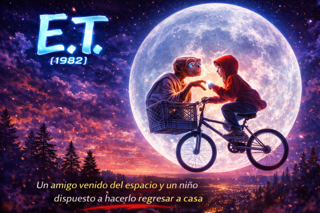 Un amigo venido de las estrellas y un niño dispuesto a desafiarlo todo por ayudarle. Esta película nos enseñó el valor de la empatía, la lealtad y la imaginación, dejando una de las escenas más icónicas de la historia del cine grabada para siempre en nuestra memoria.