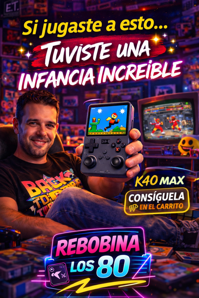 Rebobina los 80 nace con una idea muy clara: revivir los recuerdos de una generación que creció entre cintas VHS, videojuegos clásicos y tardes frente al televisor.